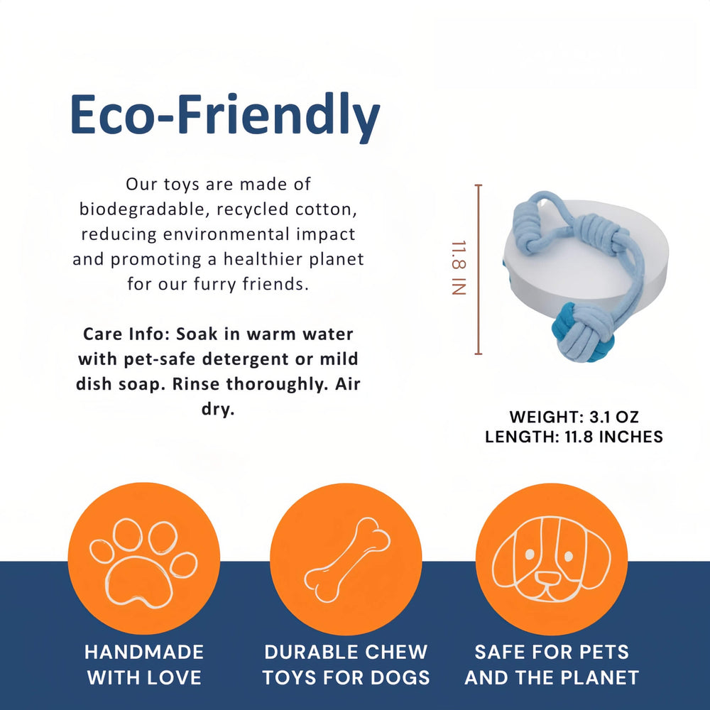 Whether your dog loves to tug, chew, chase, or stay engaged with you during playtime, this eco-friendly rope toy is a fun and practical addition to your toy basket.