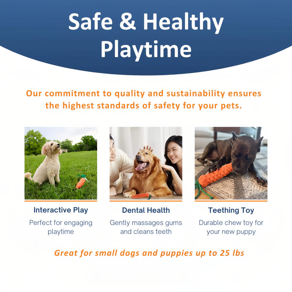 This toy is designed for interactive play and everyday chewing for small dogs and puppies.